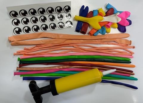 Luftballons aller Größen für die Herstellung von Princess-Luftballons und Augenaufklebern werden mit einer Ballonpumpe im Kit geliefert
